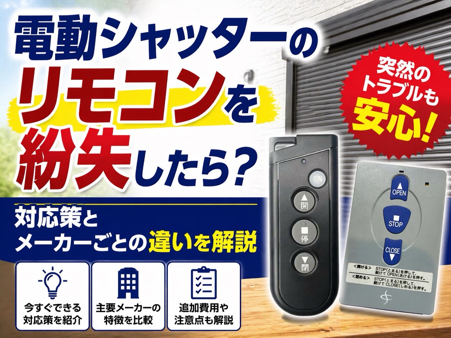 電動シャッターのリモコンを紛失したら?対応策とメーカーごとの違いを解説
